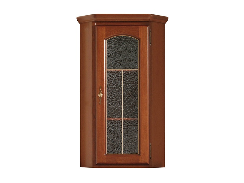 Tyylikäs kulmakaappi pähkinä- ja kastanjajäljitelmiä. Kaappi voidaan sijoittaa edullisesti saman kalustesarjan alakulmakaapin yläpuolelle, jotka yhdessä muodostavat kokonaisen kulmahuonekalun. Yhdessä pyöristettävien muotojen ja messinkikahvojen kanssa huonekalusta tulee klassinen ominaisuus kotiisi. Lisäyksityiskohtana sinulla on kaunis himmeä ikkuna kaapin ovessa.