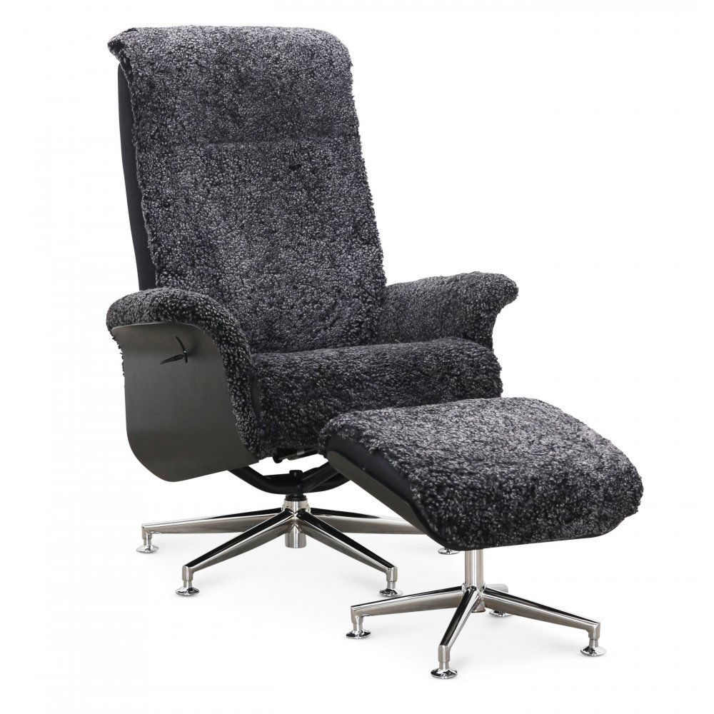 Nojatuoli jalkarahilla, aitoa lampaannahkaa, musta/tummanharmaa - Ulla