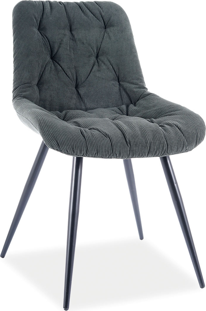 Metallinen ruokapöydän tuoli. Päällystetty polyesterikankaalla.