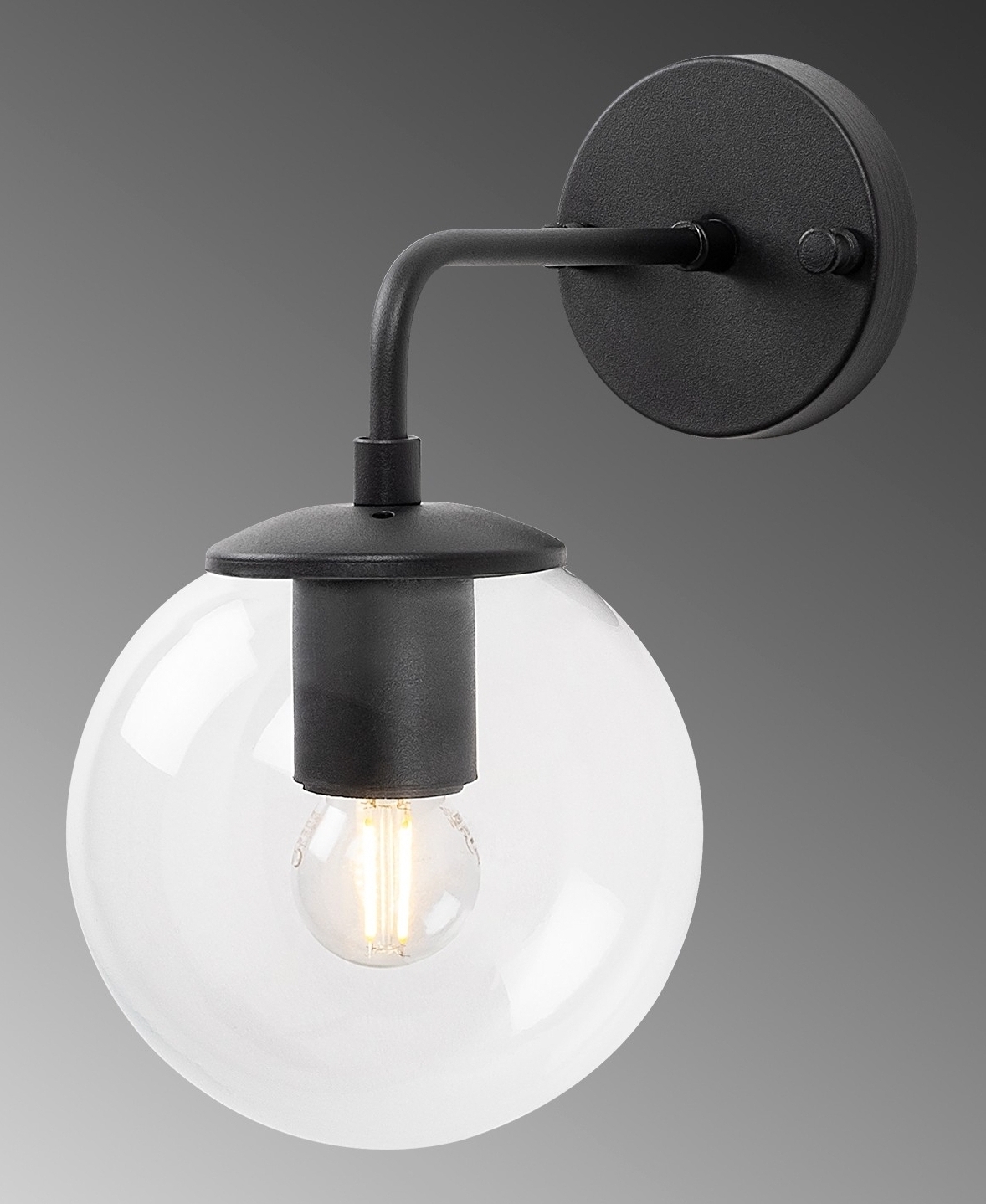 Metalli- ja lasiseinävalaisin. Valonlähde ei sisälly.