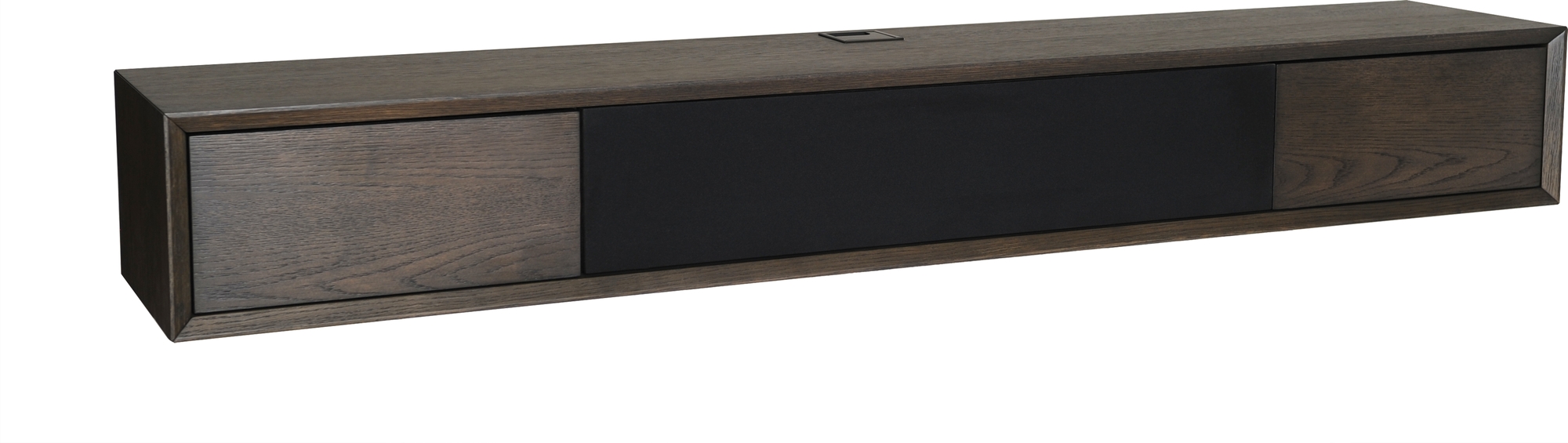 Mediapenkki ruskeaksi lakattua tammiviilua, 2 laatikkoa ja 1 ovi. Toimitetaan kokoamattomana.