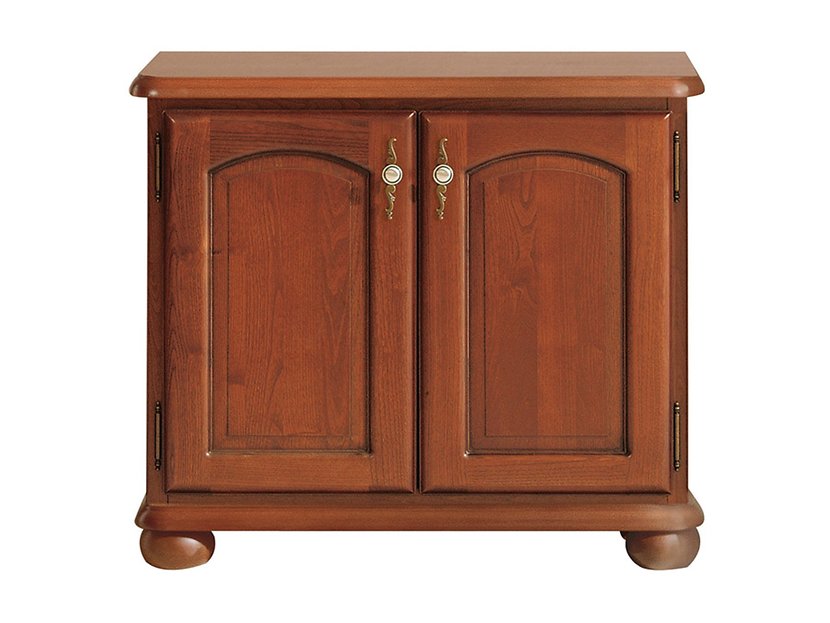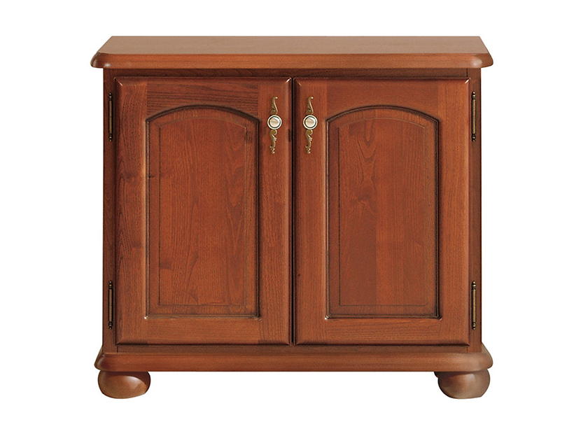Käytännöllinen senkki pähkinä- ja kastanjajäljitelmiä. Senkki on kaksi ovea ja hyvä säilytyspinta yläosassa. Pyöristetyillä muodoillaan ja messinkikahvoillaan huonekalusta tulee klassinen sisustusyksityiskohta kotiisi.