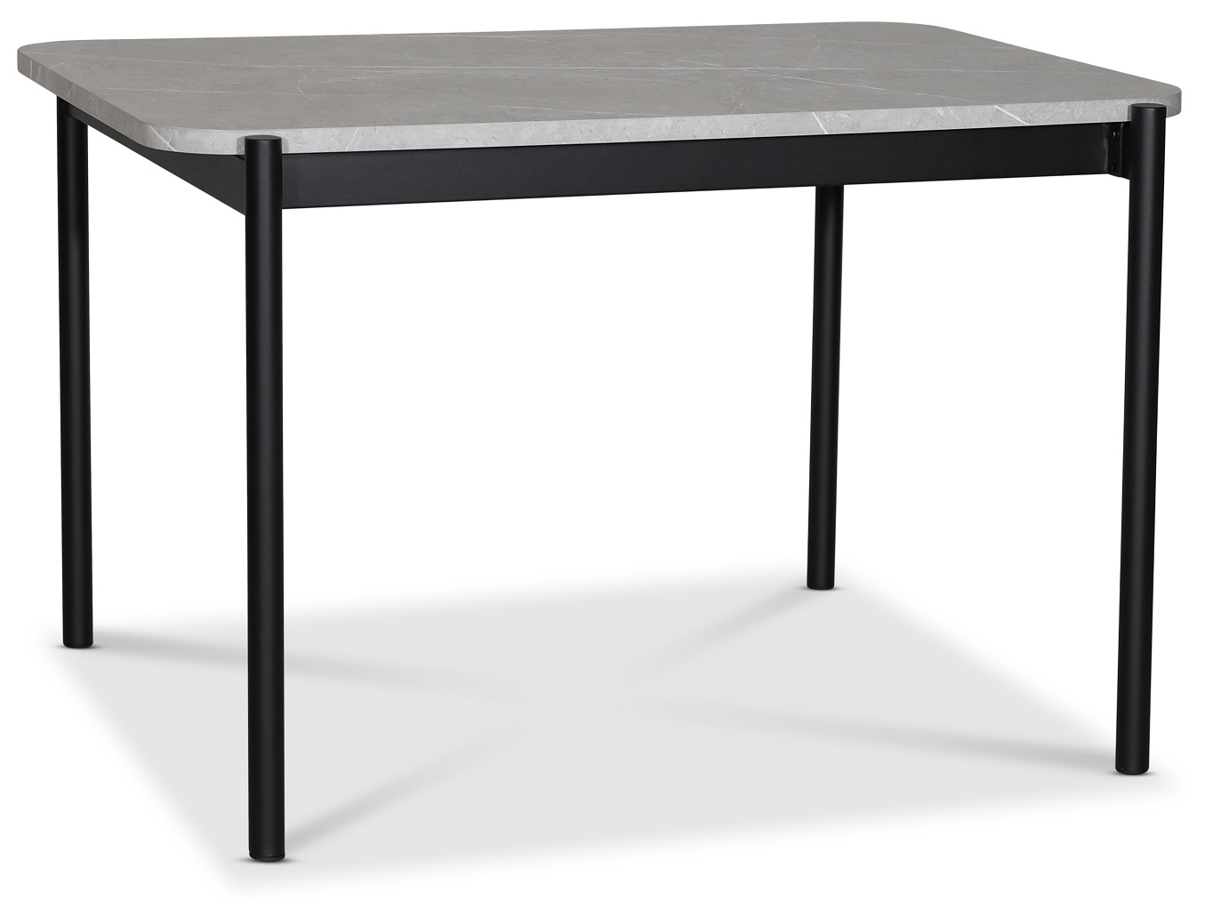 Wayne-huonekalusarja on edullinen sarja hienolla työstyksellä ja muotoilulla. Ruokapöytä, jonka kansi on kestävää vaaleanharmaata marmorikalvoa ja musta metallipohja.